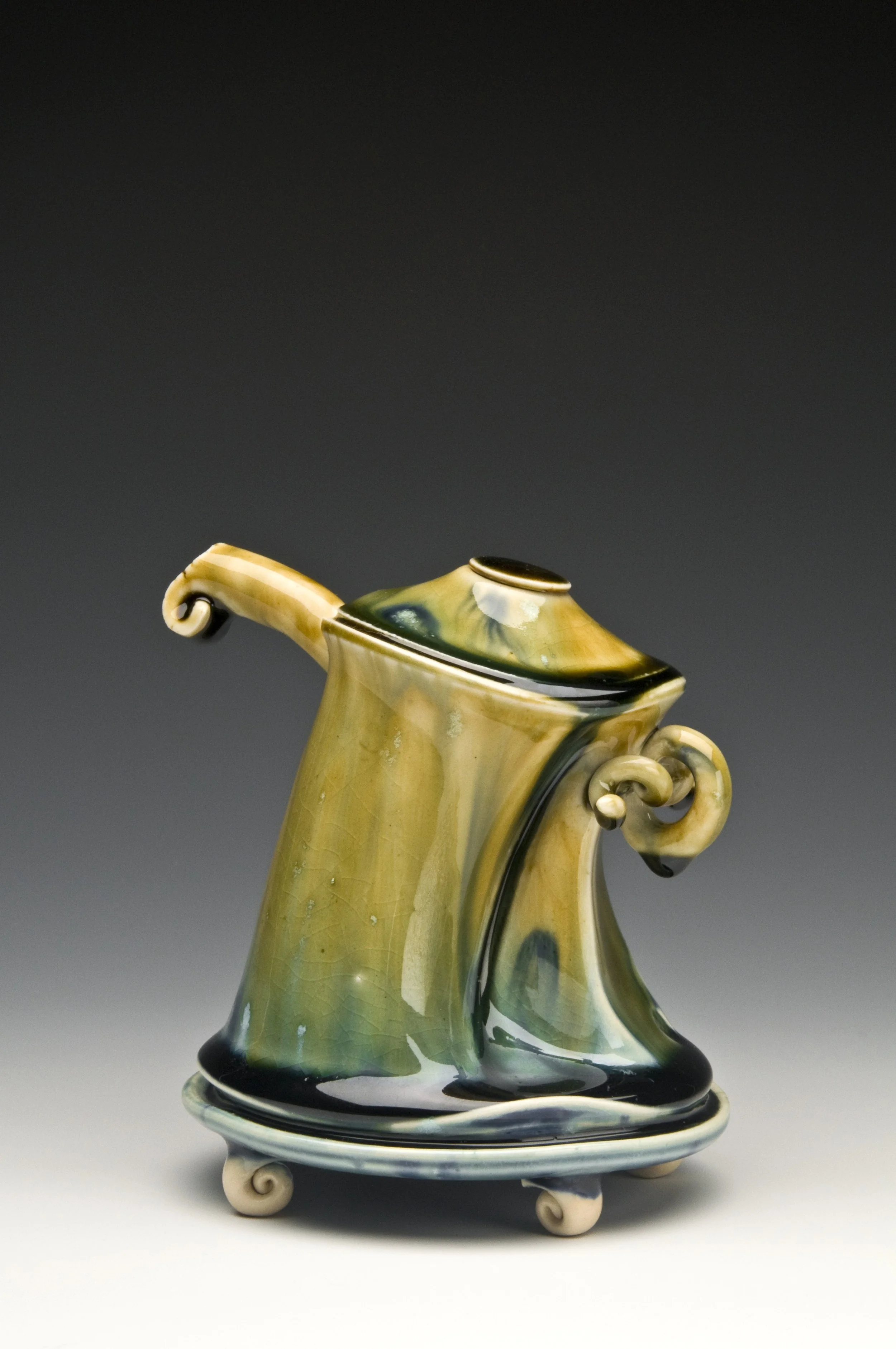 The teapot form continues to challenge and fascinate me: yet I am striving for metamorphosis, for growth, for expansion. I want to retain all that I have learned in these years and apply it on a new scale. In short, I have the urge to make my creations “grow up.”
