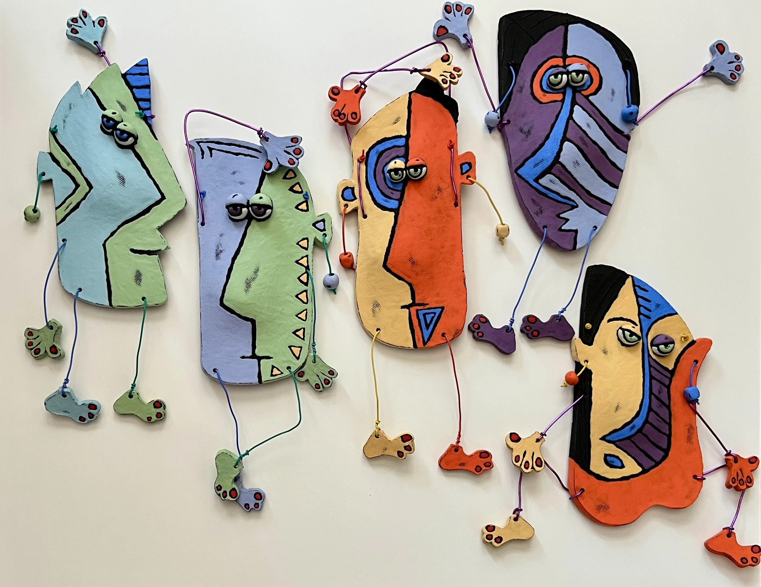 Jana uses clay in an unusual way – to create colorful, whimsical, wacky masks and other pieces. She make masks because she is fascinated by – their aura of mystery and transformation. Masks let us become someone else, or allow us to be our true selves through anonymity.